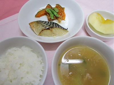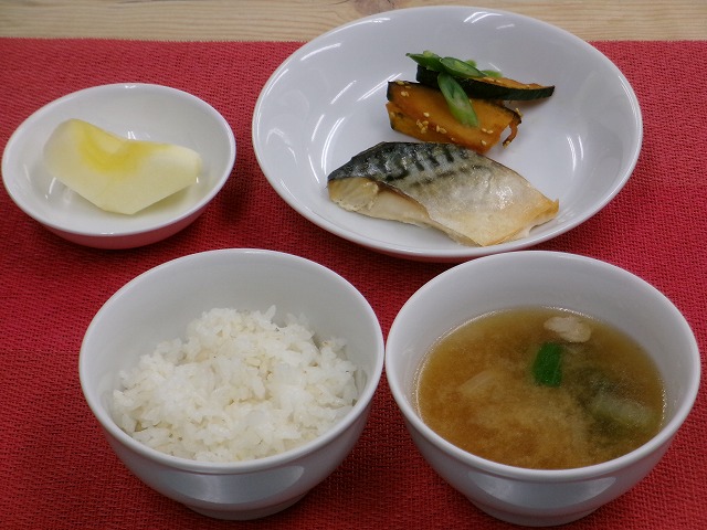 ごはん サバの塩焼き 南瓜の甘酢和え