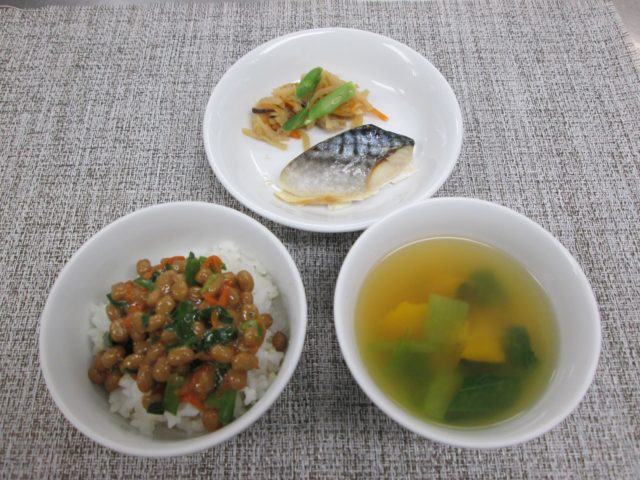 納豆ごはん サバの塩焼き