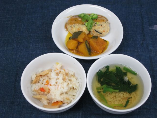 たけのこごはん ひじき入り鶏つくね