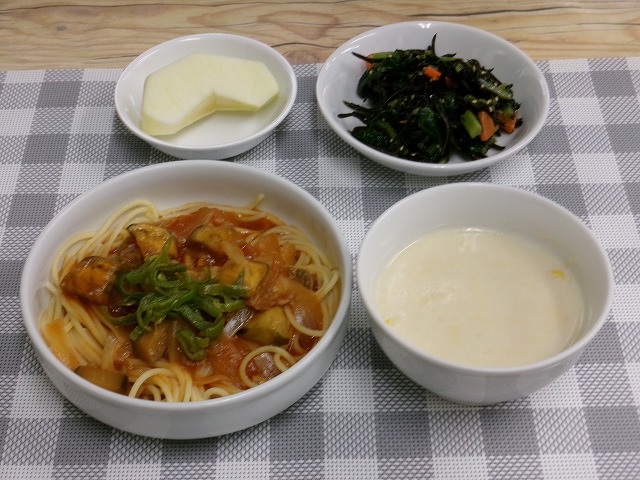 秋なすとベーコンのスパゲティー