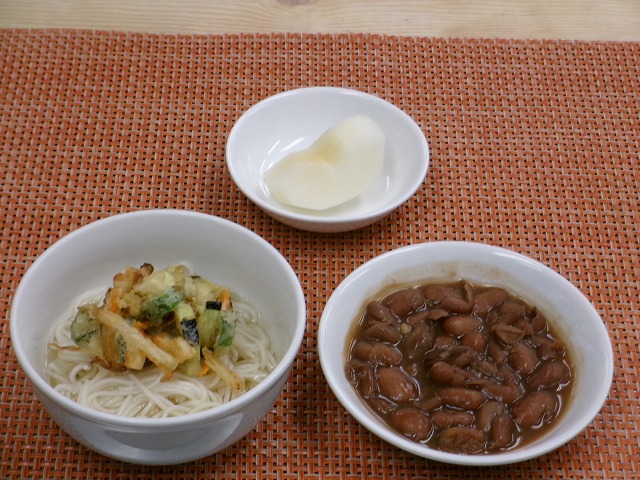 冷やし肉汁うどん かぼちゃとベーコンのサラダ