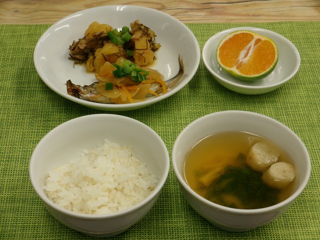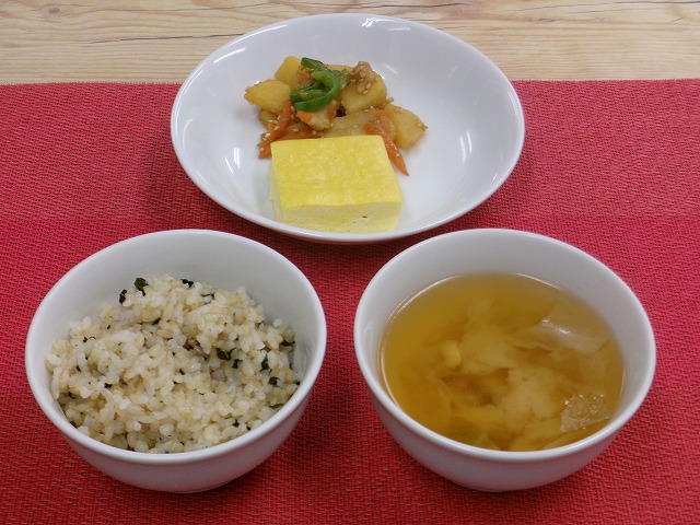玄米わかめ御飯 豆腐入りだし巻き卵