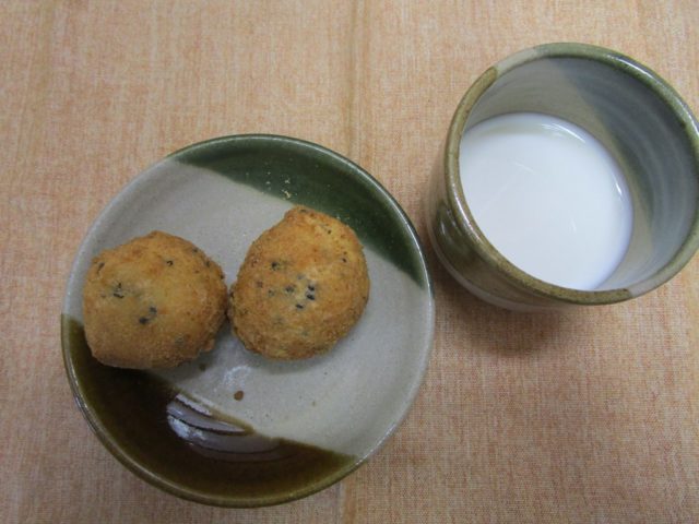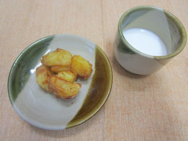 揚げみそがらめ 牛乳