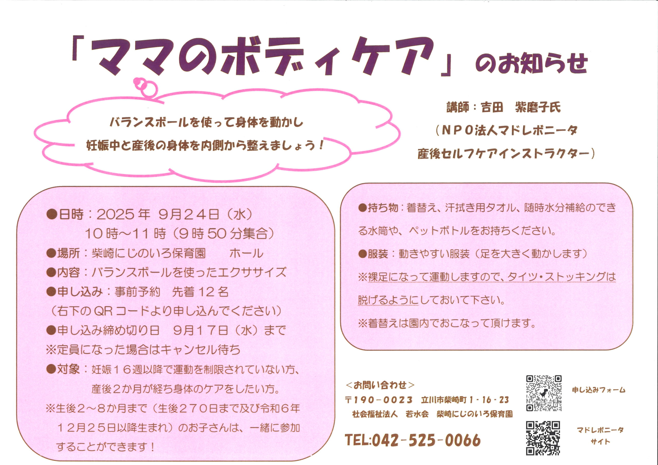 NPO法人マドレボニータ 産後セルフケアインストラクターの吉田紫磨子先生をお招きし